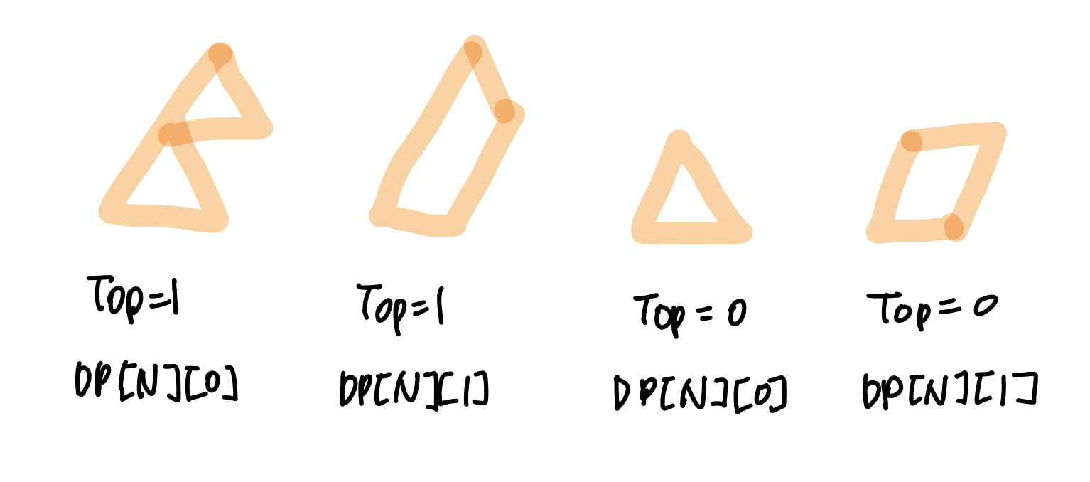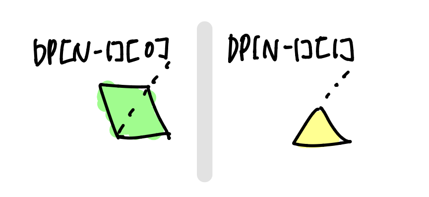 다음으로 일반항(DP[N])에서의 점화식을 구하기 위해 경우의 수를 찾아보자