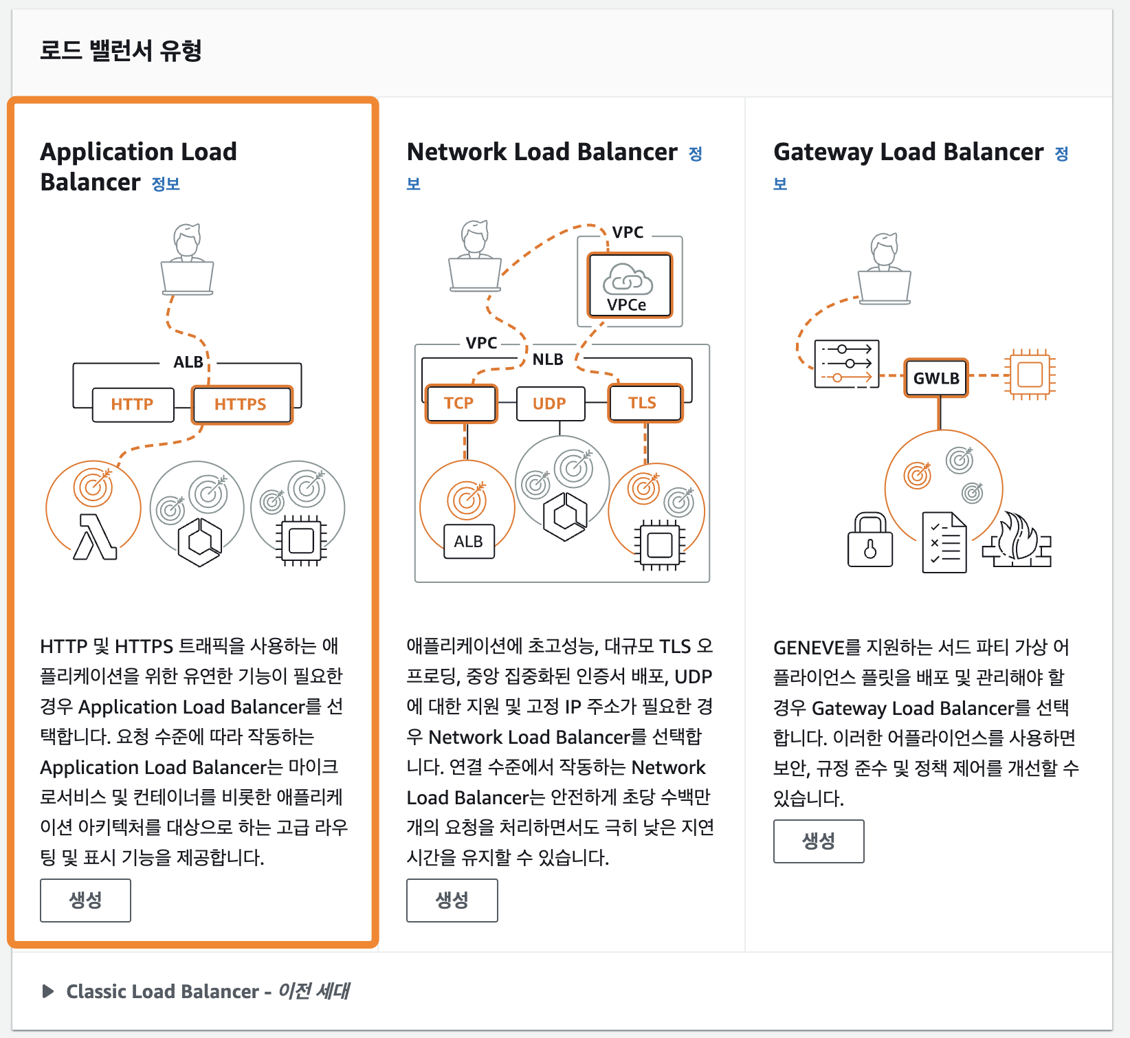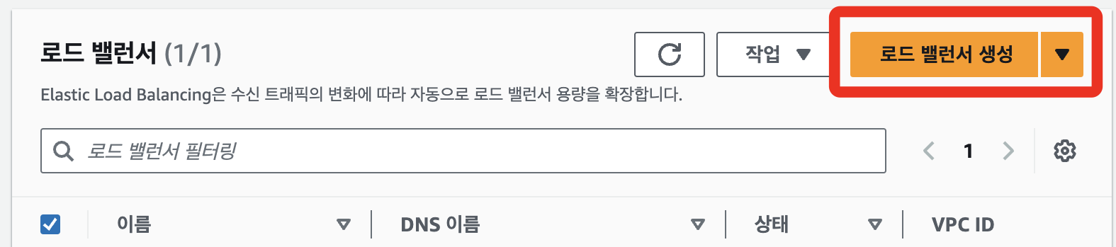 "로드 밸런서 생성" 을 통해 생성을 마무리하자.