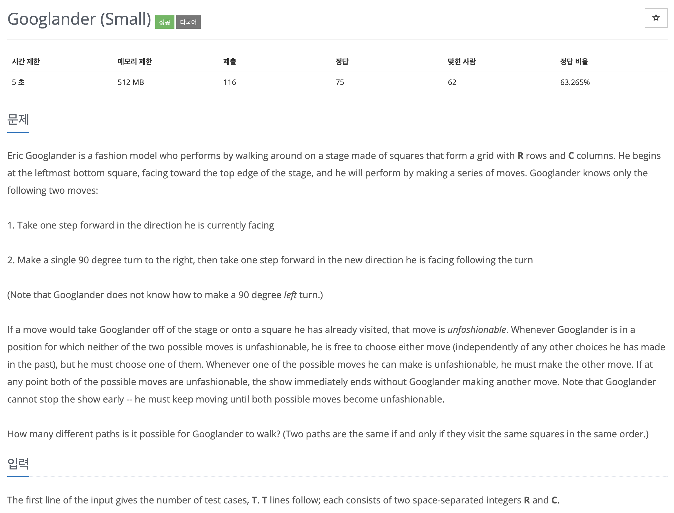 본문에 따르자면 "우아한" 경로의 수를 출력한다.