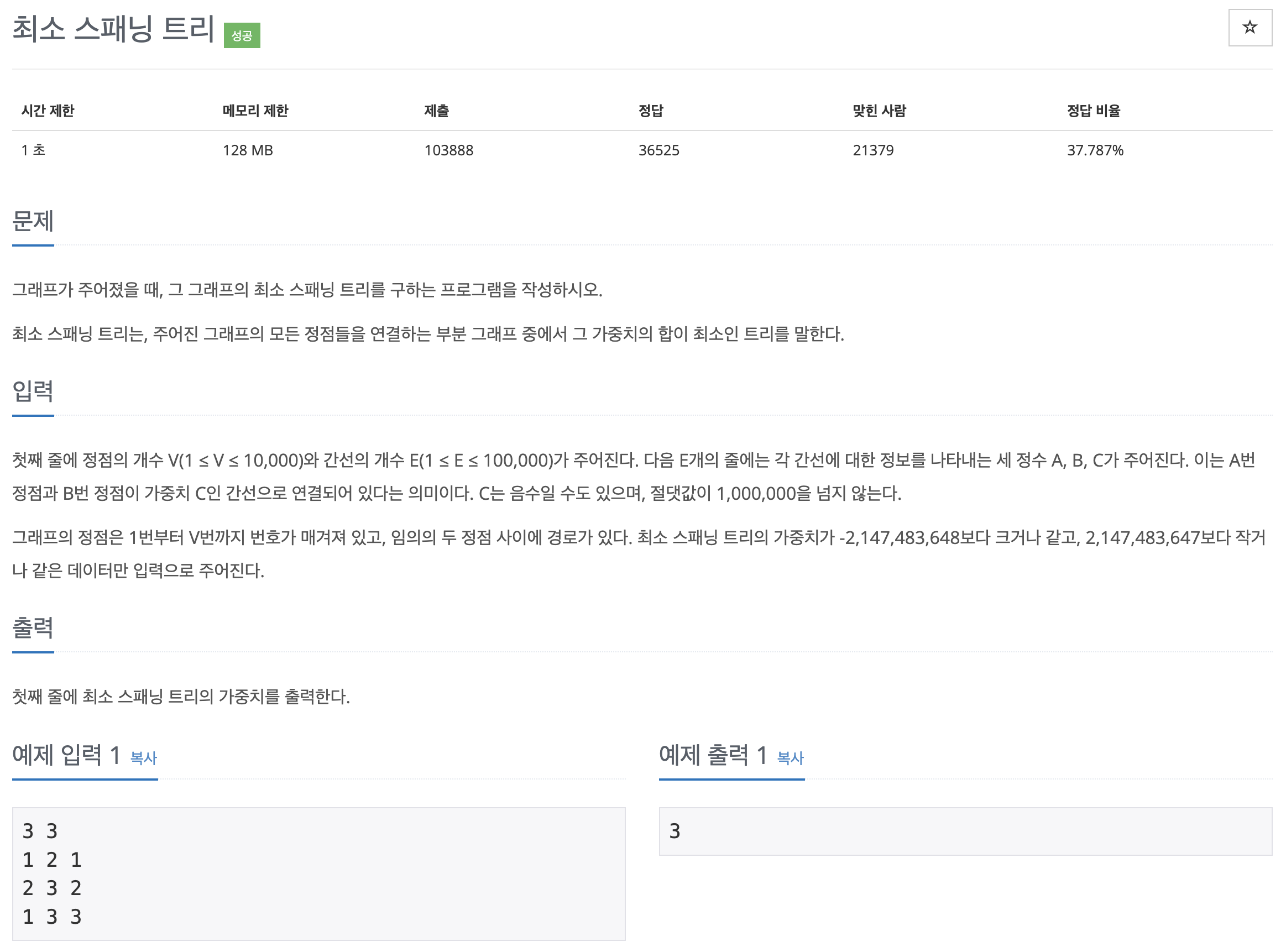 이때 뽑은 간선으로 구성된 트리가 사이클(순환 구조, 고리)을 가지면 안 된다.