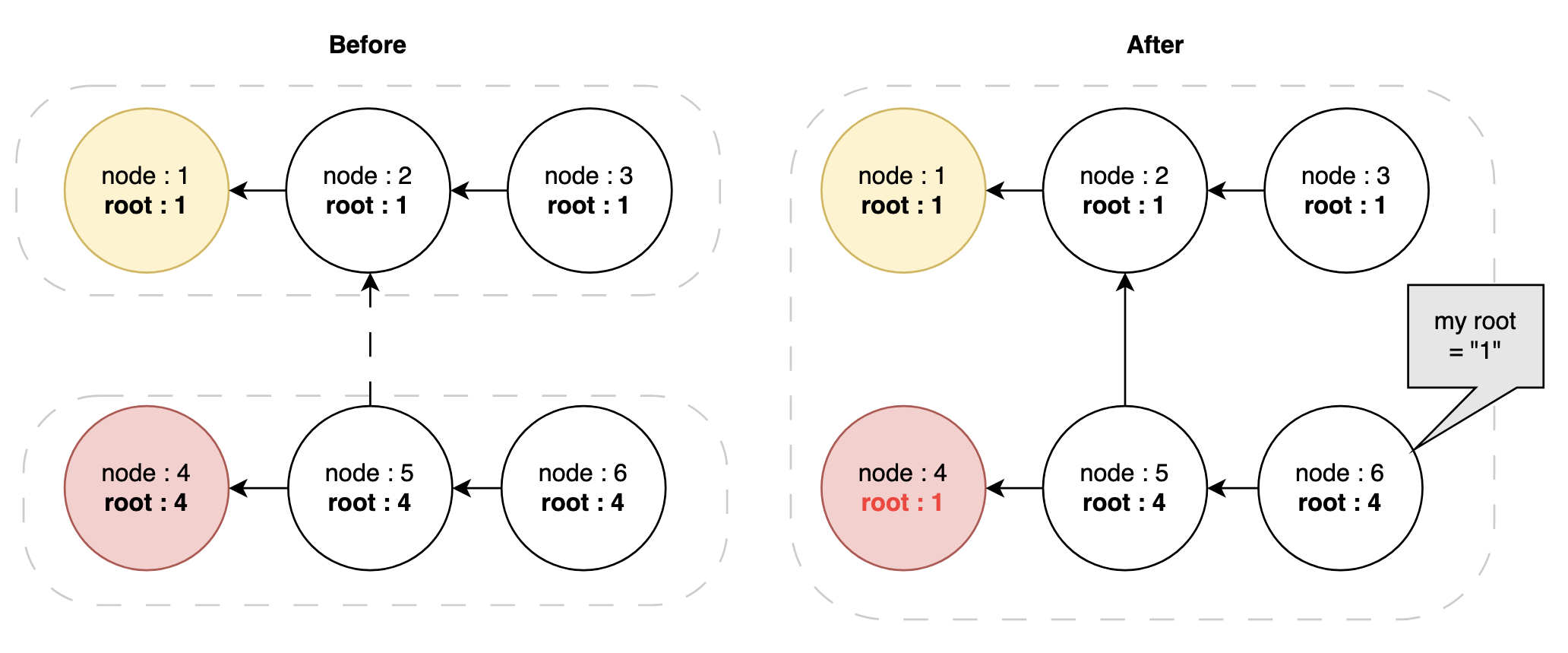 또한 부모 노드가 같은 정점이라면, 같은 트리에 속해있다고도 이해할 수 있다.