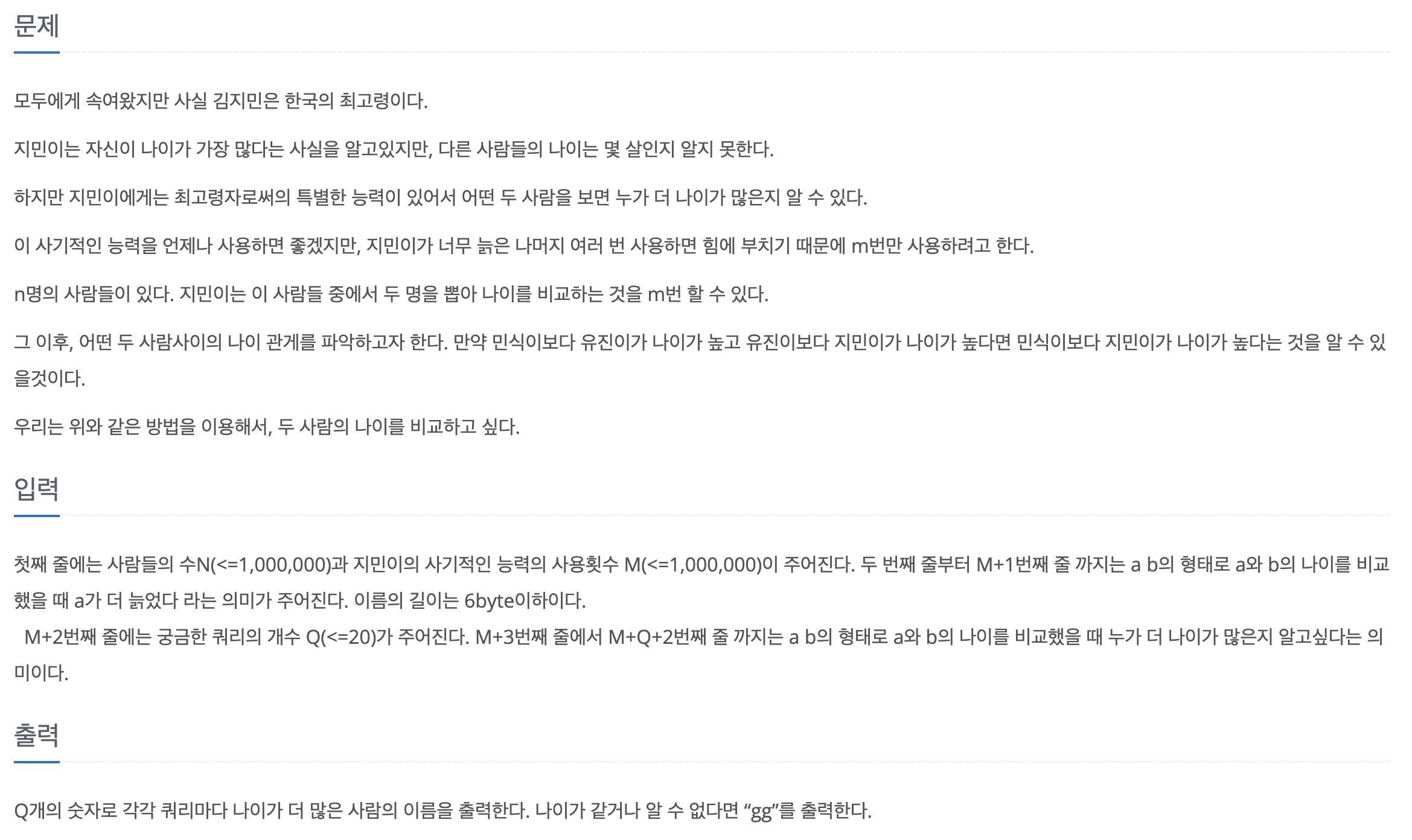 "이름의 길이는 6byte 이하이다"를 주목하면, 입력으로 주어지는 a, b가 문자열이 될 수 있다는 걸 살포시 유추할 수 있다..