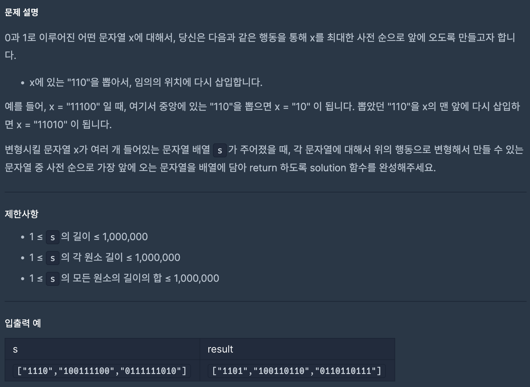 - 남은 문자열에 0이 없다면 가장 앞에 삽입