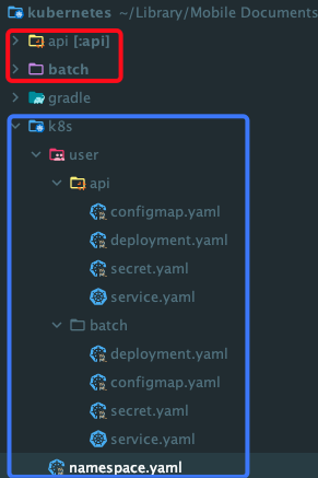 위 api, batch 모듈은 user를 위한 모듈이라고 가정하고 생성했기에, namespace를 user로 지정해주고자 한다.