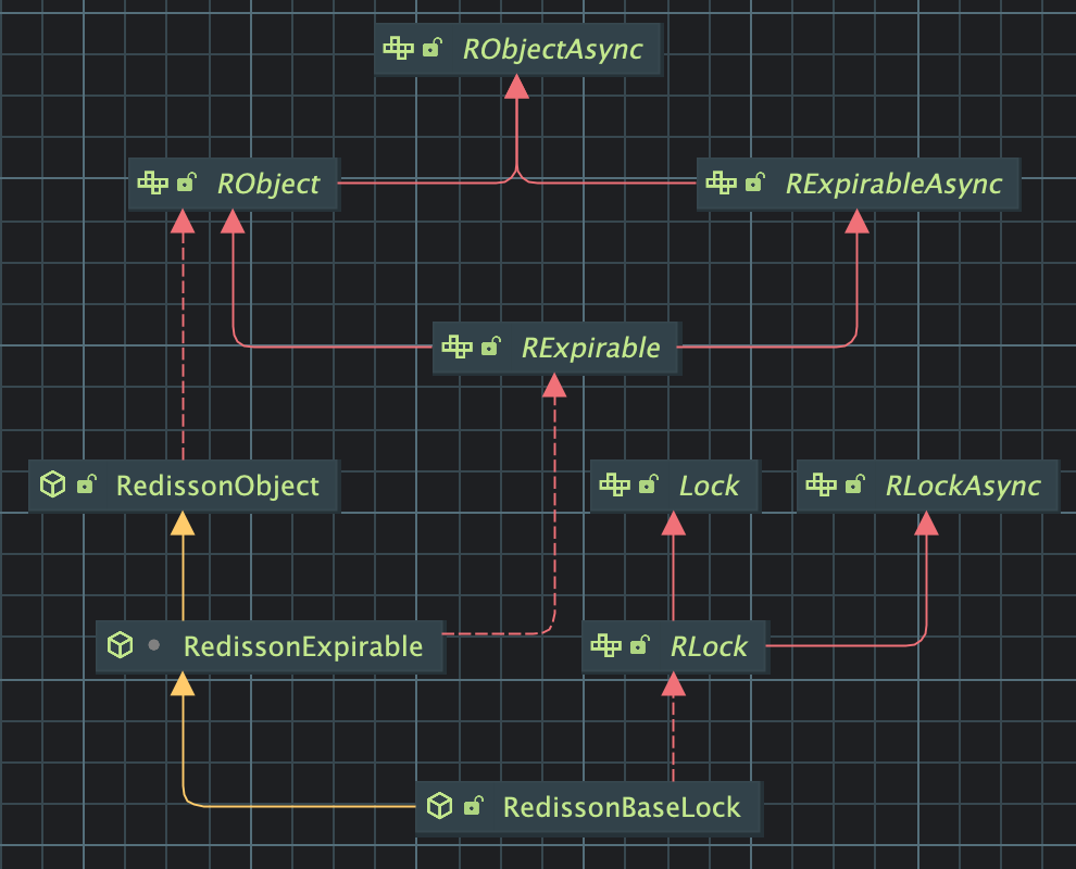Redisson에 사용되는 락 종류는 가장 하단 추상 클래스인 RedissonBaseLock을 구현하는 구조이다.